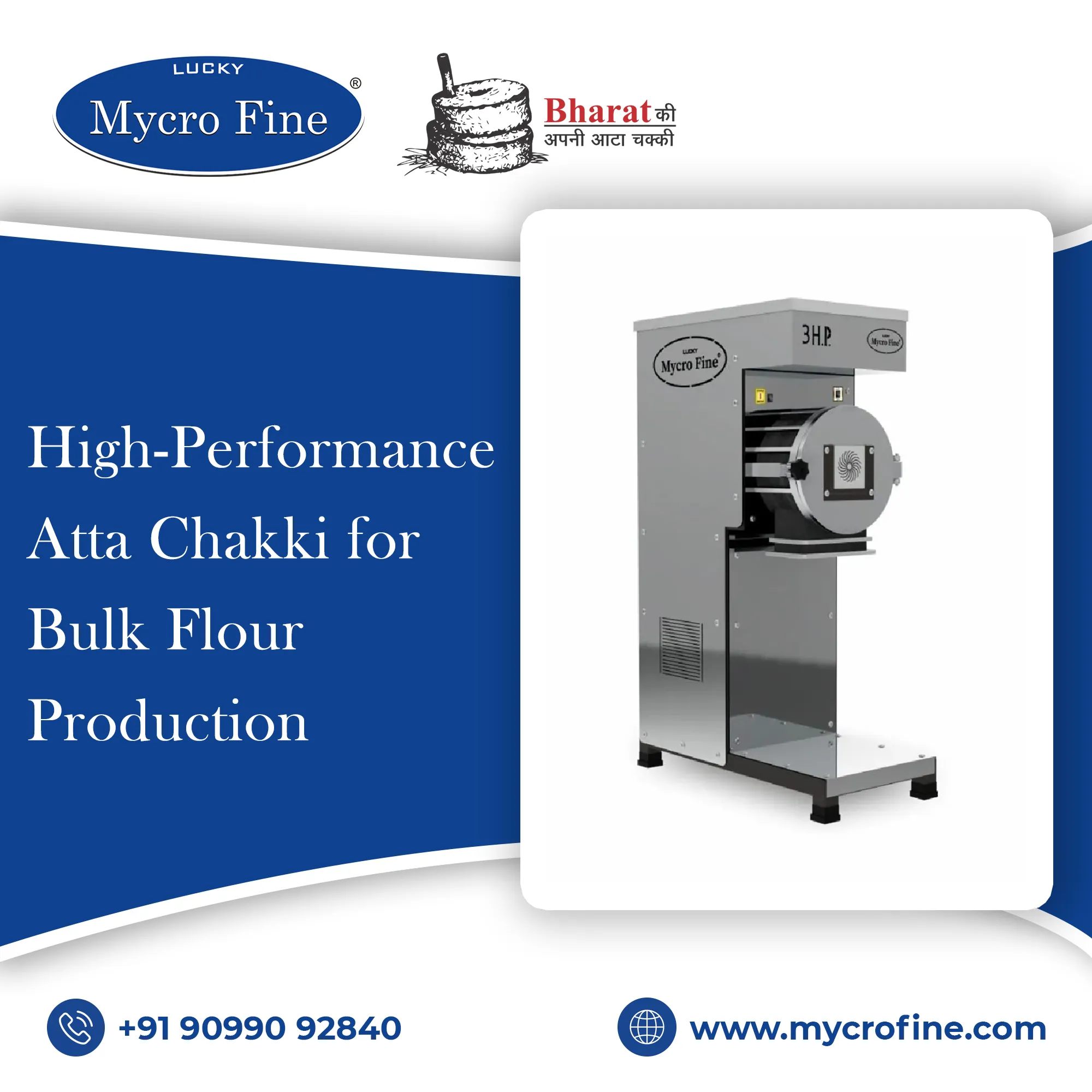 For more information about High-Performance Atta Chakki for Bulk Flour Production, call us at +91 909-909-2840 or email marketing@mycrofine.com today.